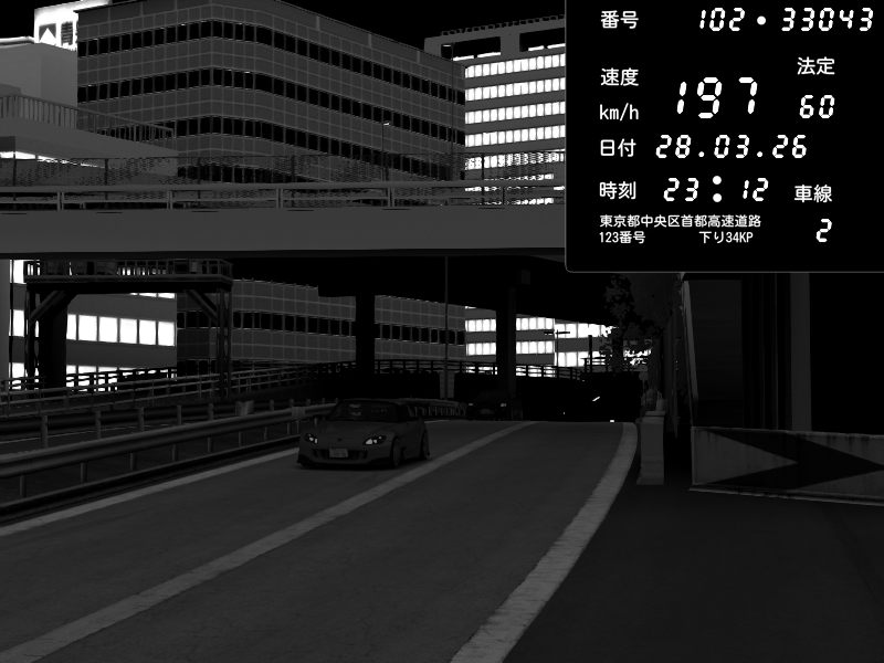 | 2026/03/29 02:18 | C1外回り 新富町 | 204 / 60 km/h | Escape77JP@pad | Honda S2000 (AP2 - Legendary) | CAPTURE |
