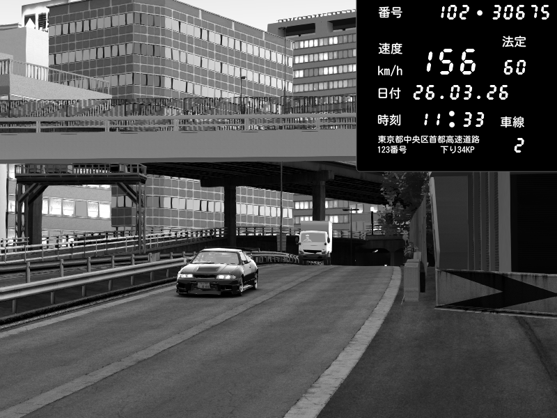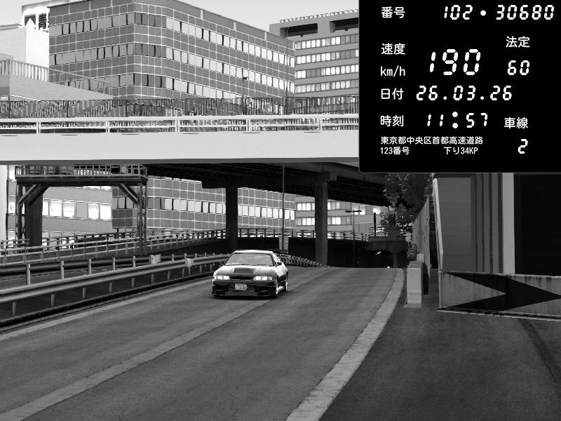 | 2026/03/26 11:57 | C1外回り 新富町 | 190 / 60 km/h | omafu | Nissan Skyline GTR R33 (S3 - Wangan) | CAPTURE |