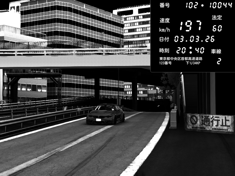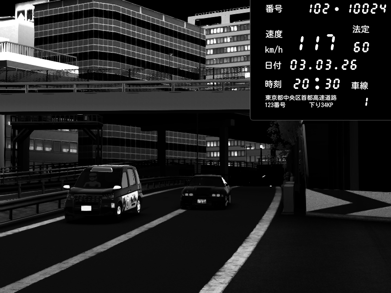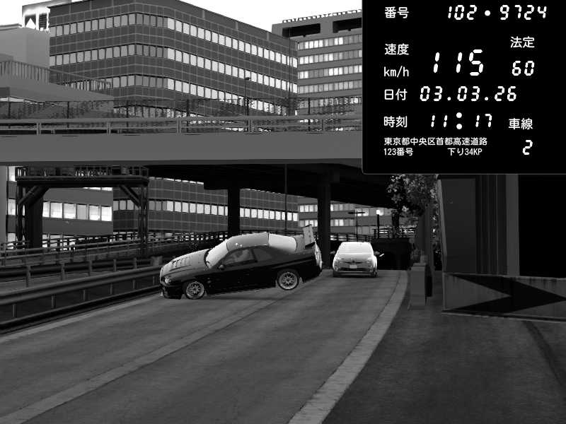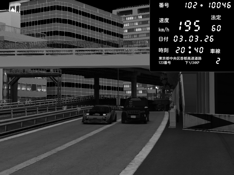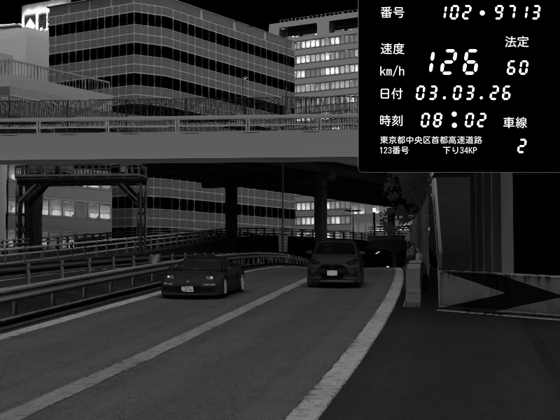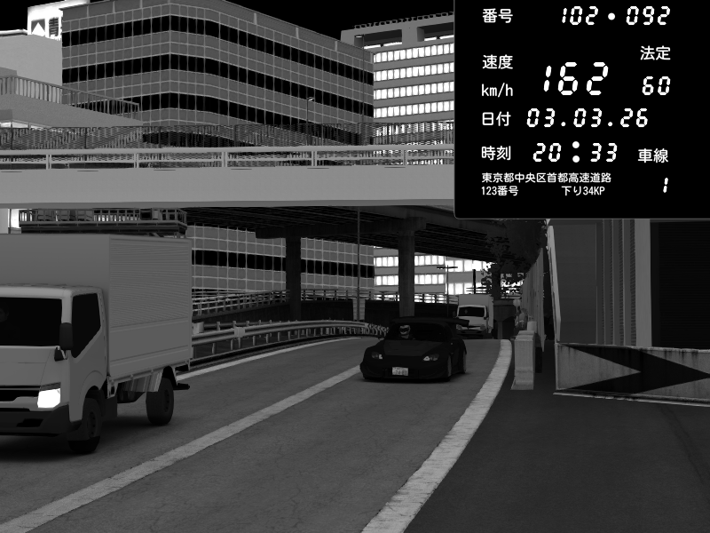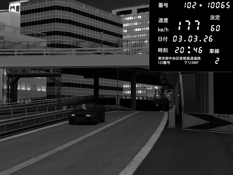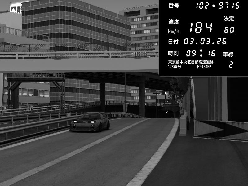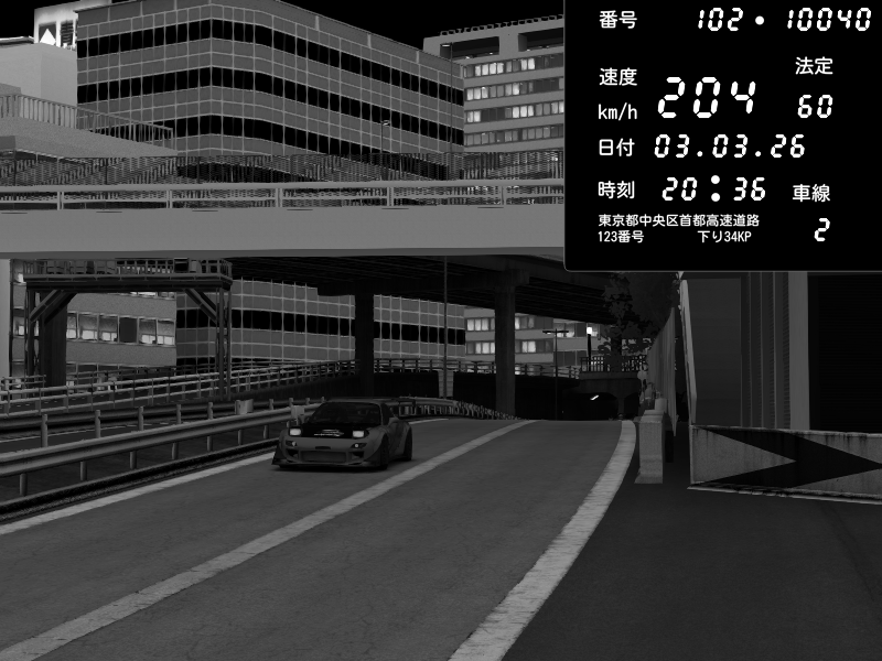 | 2026/03/03 20:30 | C1外回り 新富町 | 117 / 60 km/h | Kurokabe | Nissan Skyline GTR R33 (S3 - Wangan) | CAPTURE |