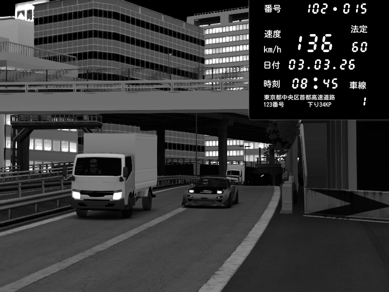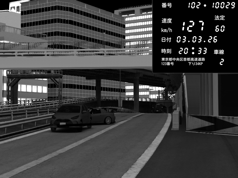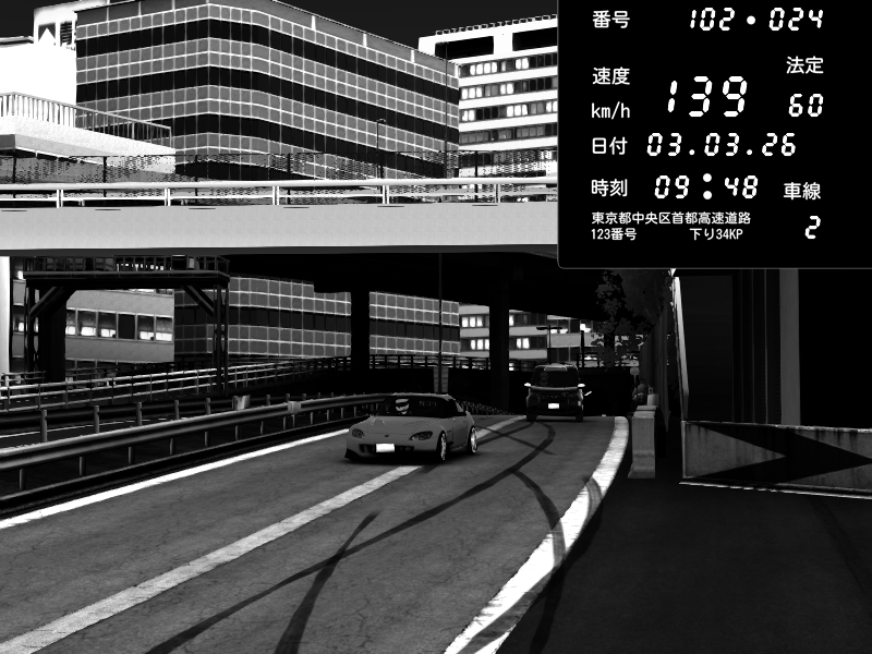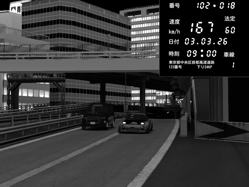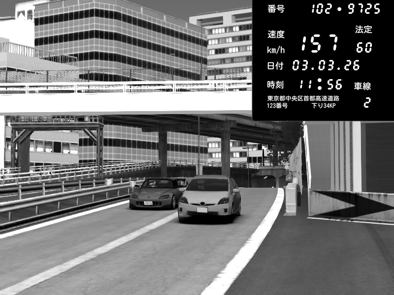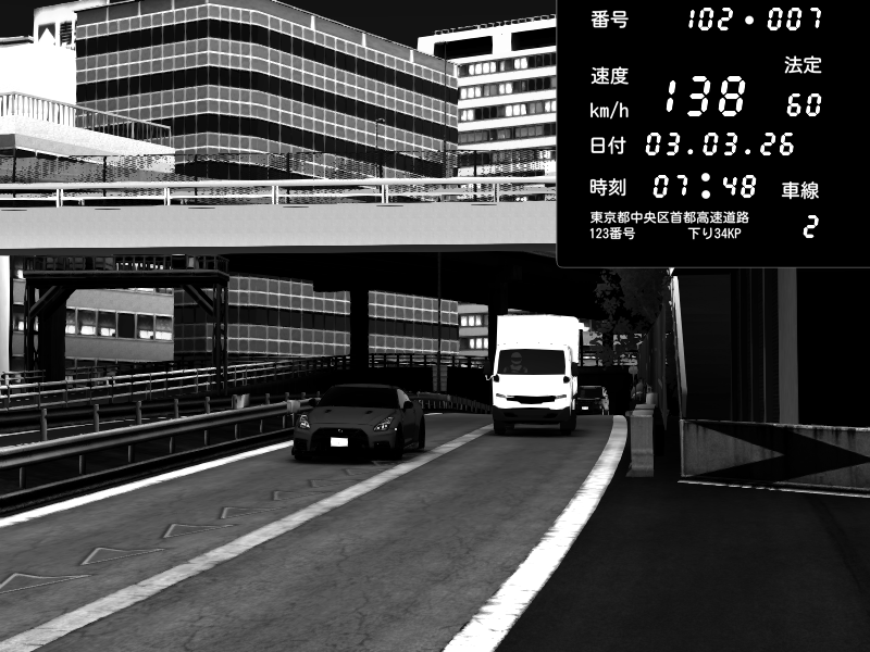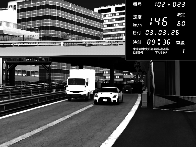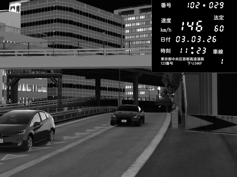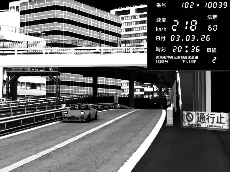 | 2026/03/03 20:30 | C1外回り 新富町 | 117 / 60 km/h | Kurokabe | Nissan Skyline GTR R33 (S3 - Wangan) | CAPTURE |