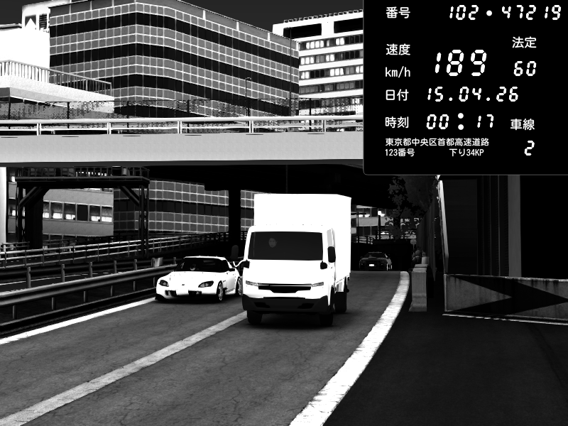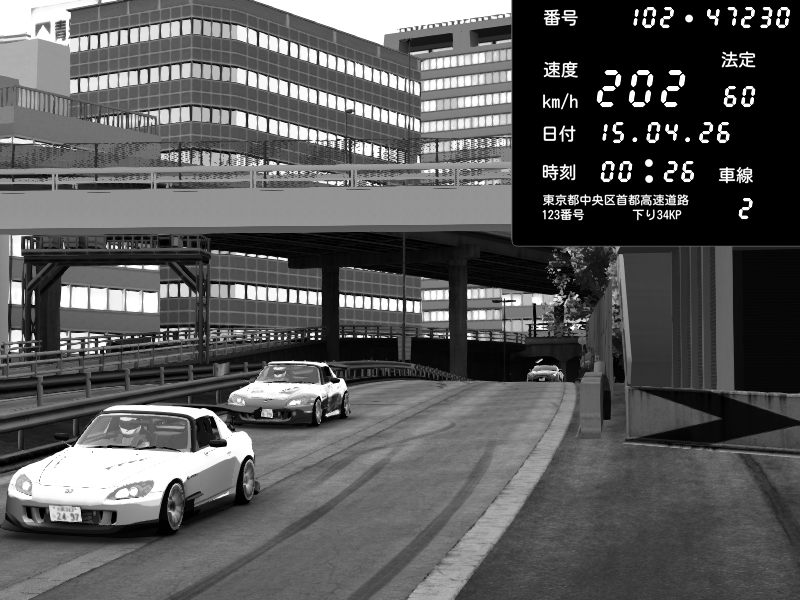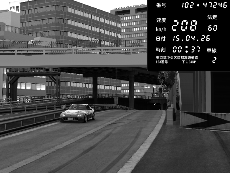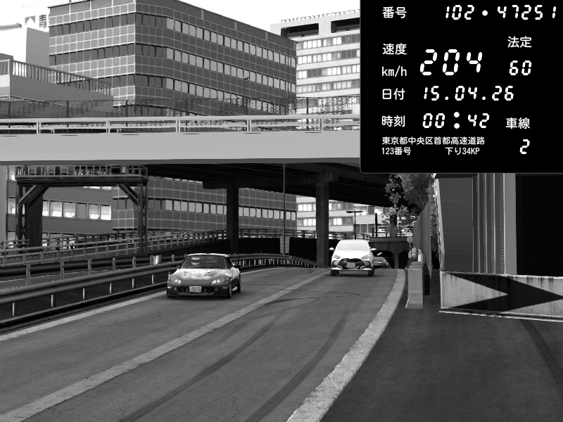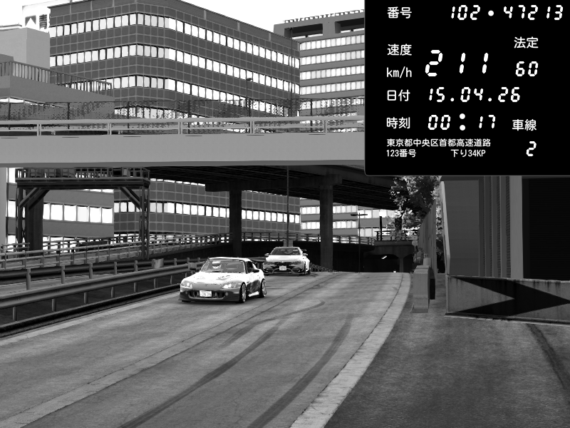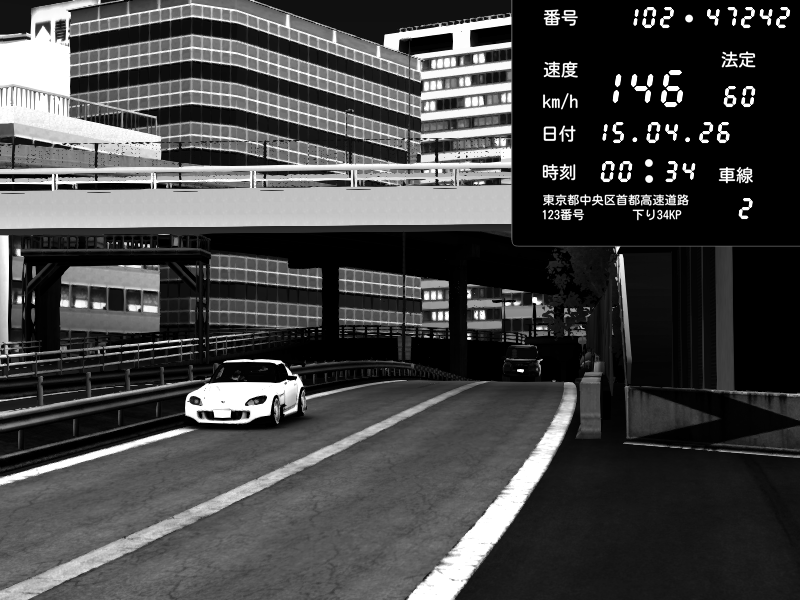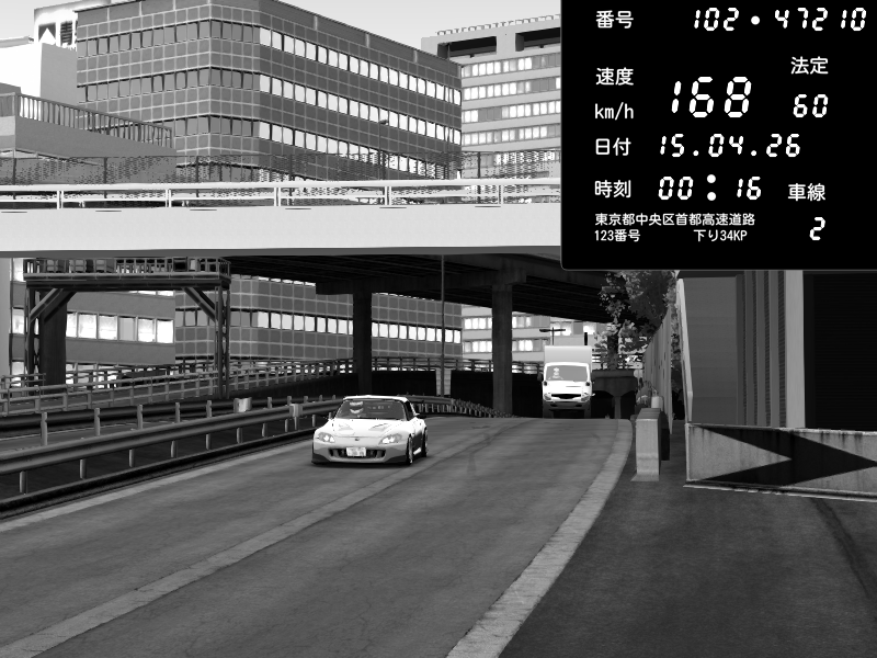 | 2026/04/15 00:16 | C1外回り 新富町 | 168 / 60 km/h | PS3 | Honda S2000 (AP2 - Legendary) | CAPTURE |