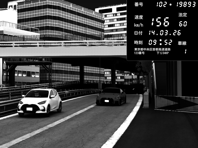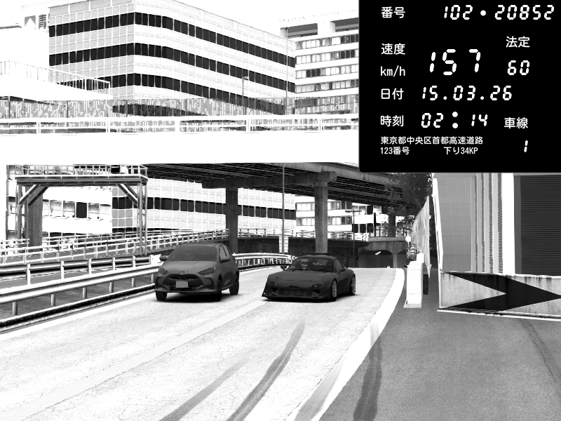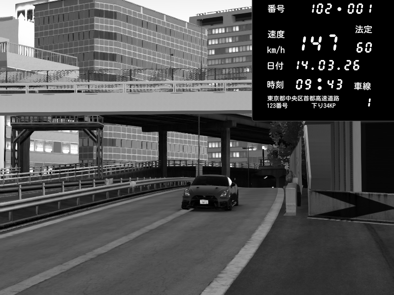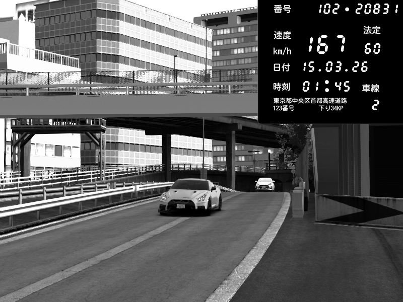 | 2026/03/15 01:45 | C1外回り 新富町 | 167 / 60 km/h | AshKaiju | Nissan GT-R NISMO 2017 | CAPTURE |