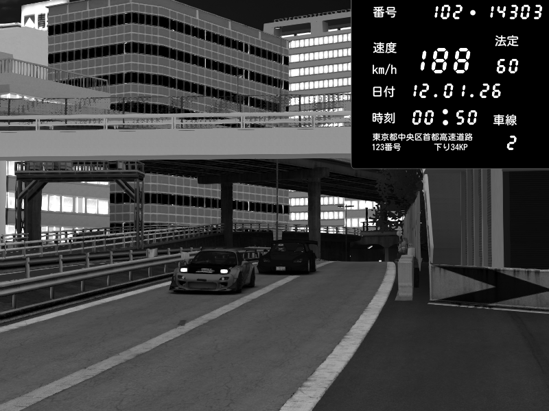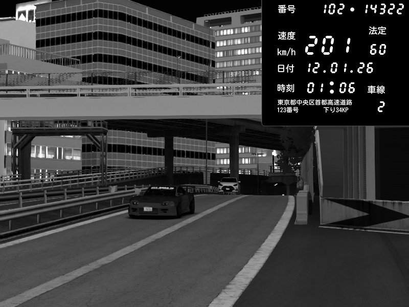 | 2026/01/12 00:46 | C1外回り 新富町 | 187 / 60 km/h | Escape77JP@pad | Honda S2000 (AP2 - Legendary) | CAPTURE |