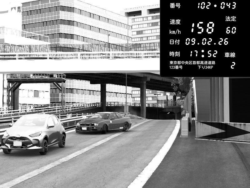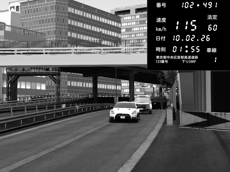 | 2026/02/09 18:20 | C1外回り 新富町 | 162 / 60 km/h | noa | Nissan GT-R NISMO 2017 | CAPTURE |