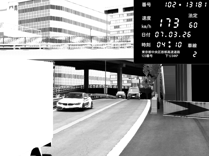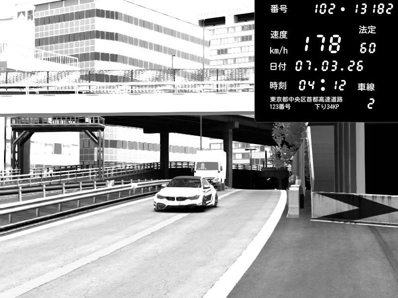 | 2026/03/07 22:51 | C1外回り 新富町 | 208 / 60 km/h | HellAkey | BMW M4 crash.Sp Varis Widebody | CAPTURE |