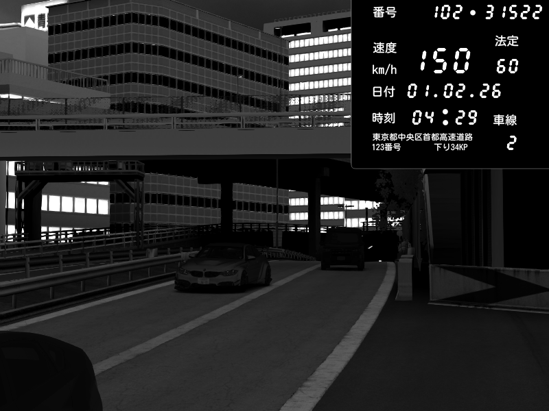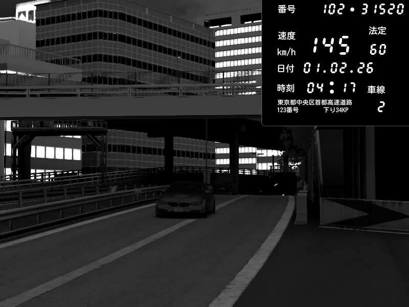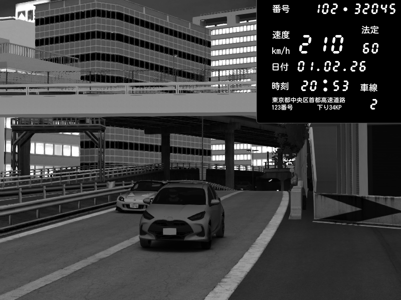 | 2026/02/01 21:00 | C1外回り 新富町 | 167 / 60 km/h | ARB333 | Nissan GT-R NISMO 2017 | CAPTURE |