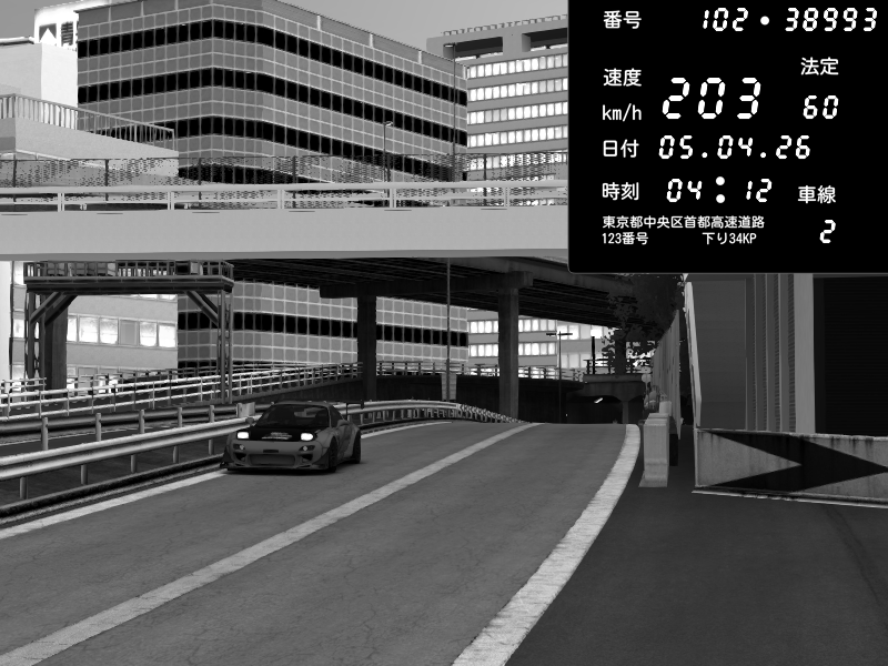 | 2026/04/05 21:45 | C1外回り 新富町 | 203 / 60 km/h | Escape77JP@pad | Honda S2000 (AP2 - Legendary) | CAPTURE |