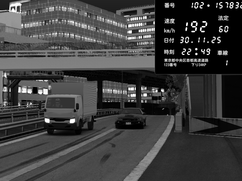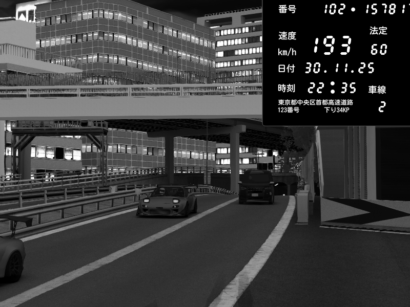 | 2025/11/30 22:47 | C1外回り 新富町 | 188 / 60 km/h | 001 | Pit Road M - Mitsubishi GTO Twin Turbo | CAPTURE |