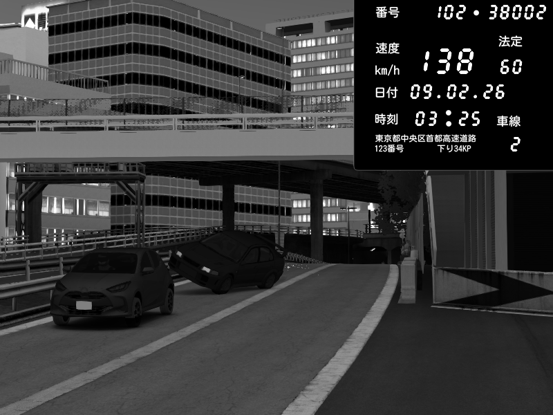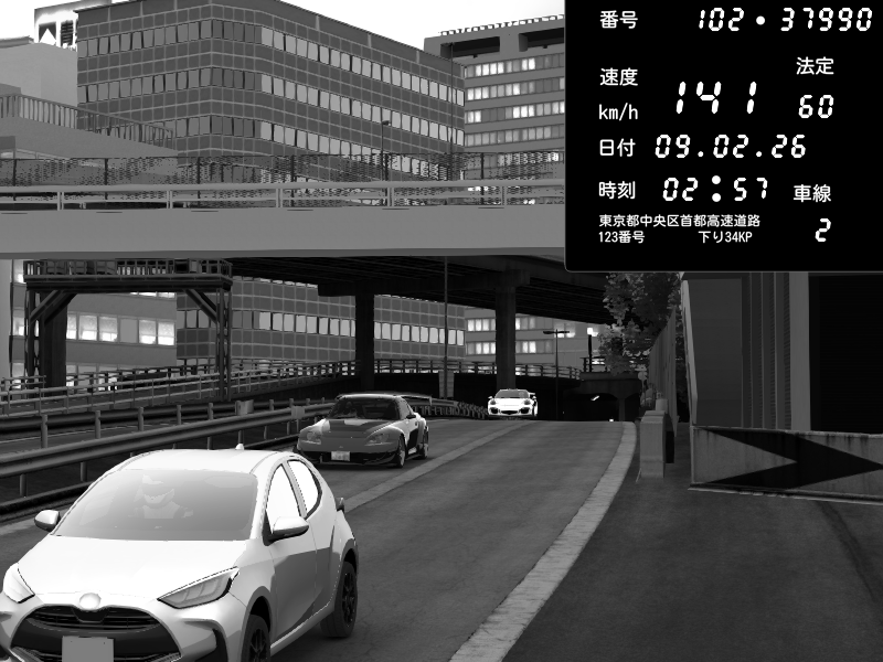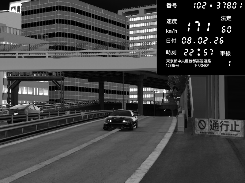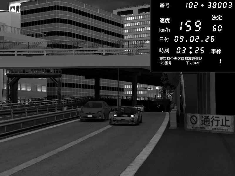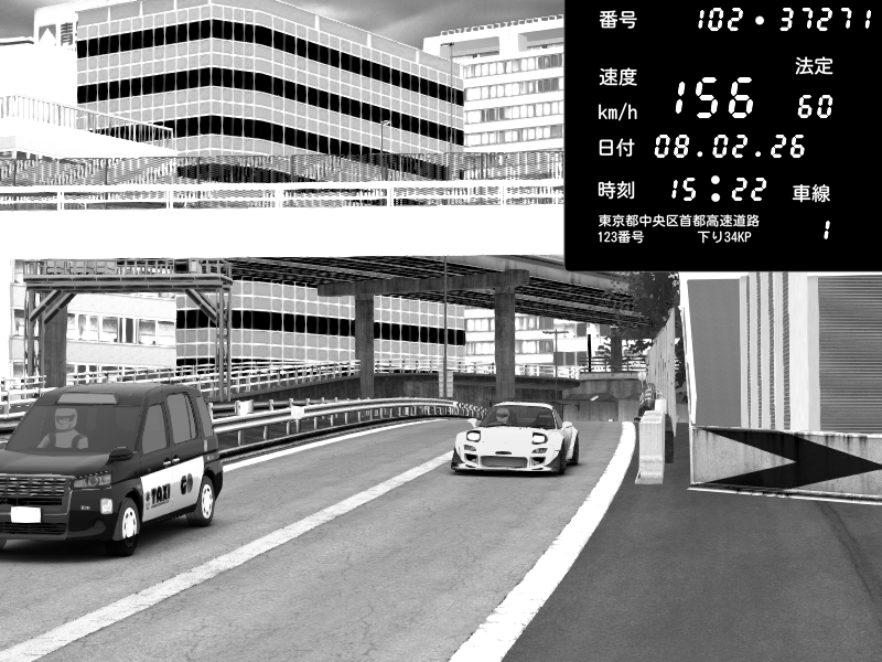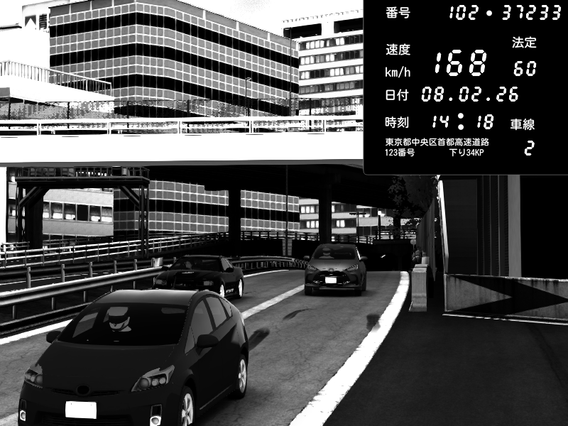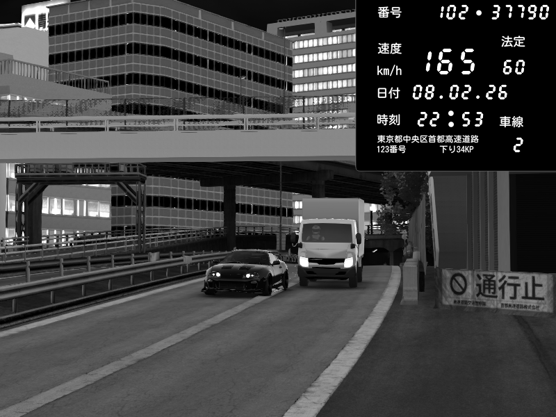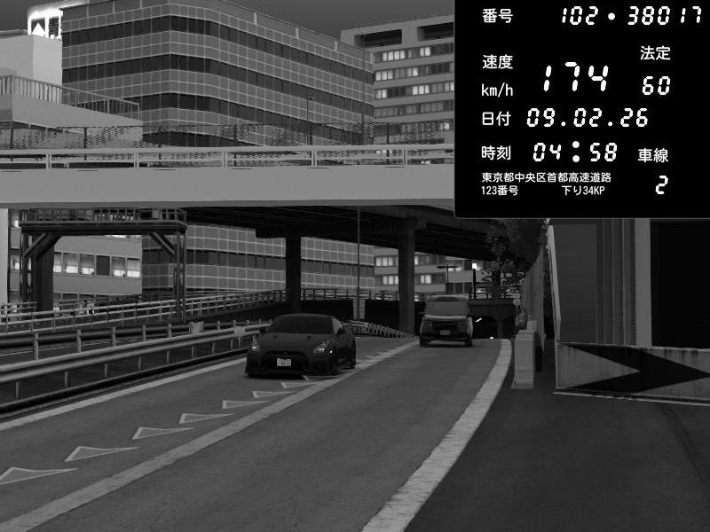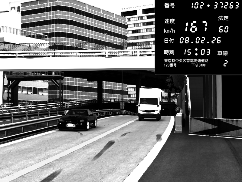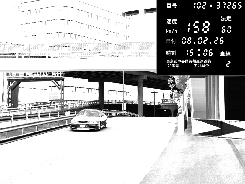 | 2026/02/08 15:06 | C1外回り 新富町 | 158 / 60 km/h | U-0 | Nissan Skyline GTR R33 (S3 - Wangan) | CAPTURE |