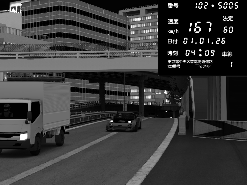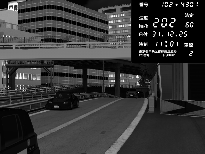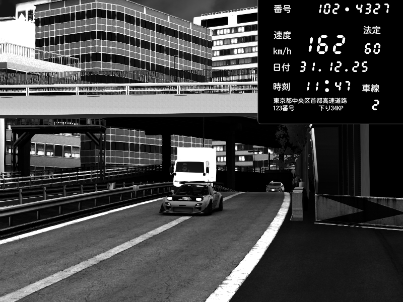 | 2025/12/31 12:34 | C1外回り 新富町 | 192 / 60 km/h | GereGere | Honda S2000 (AP2 - Legendary) | CAPTURE |