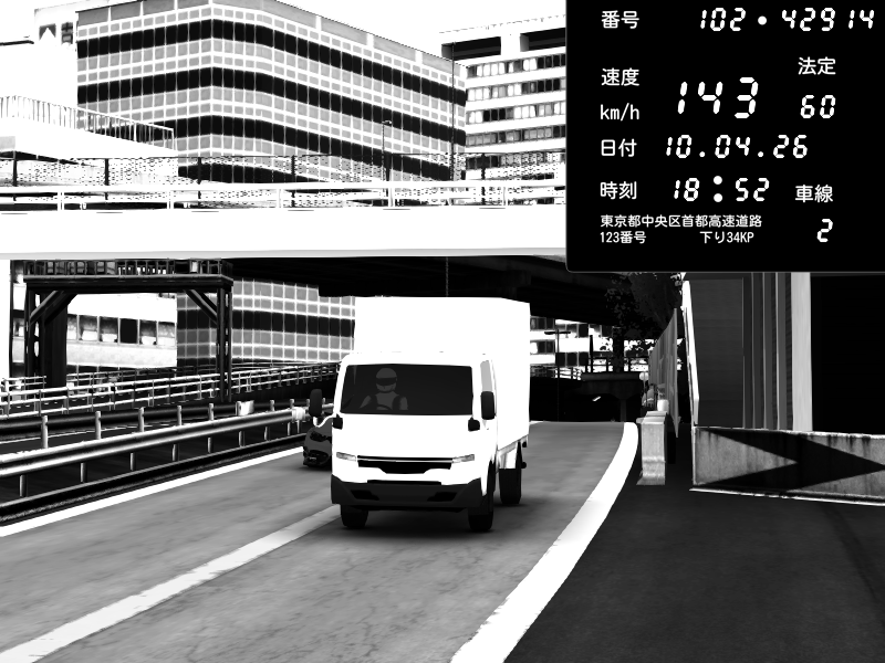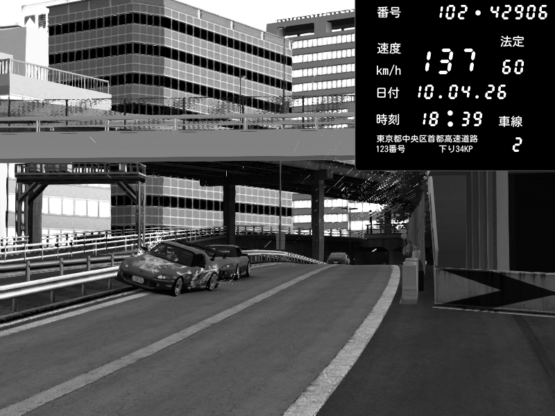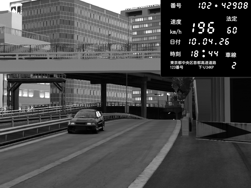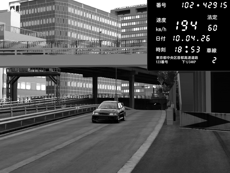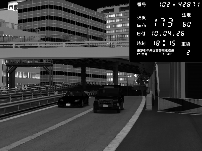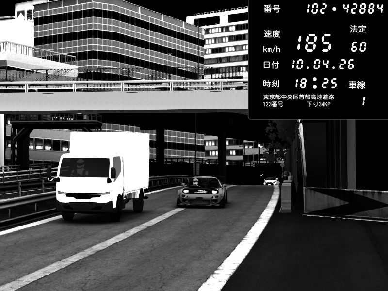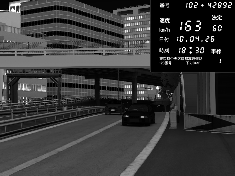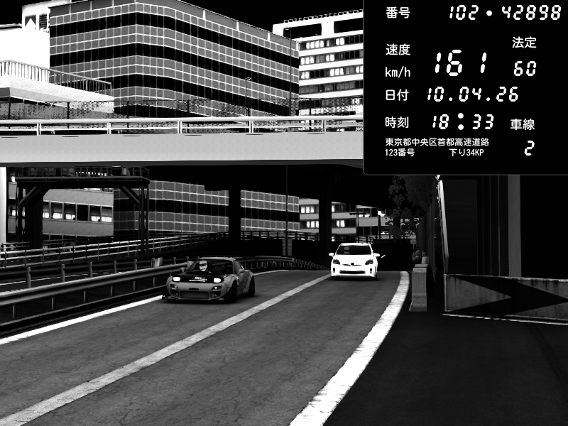 | 2026/04/10 18:15 | C1外回り 新富町 | 174 / 60 km/h | Pixy | Pit Road M - Mitsubishi GTO Twin Turbo | CAPTURE |