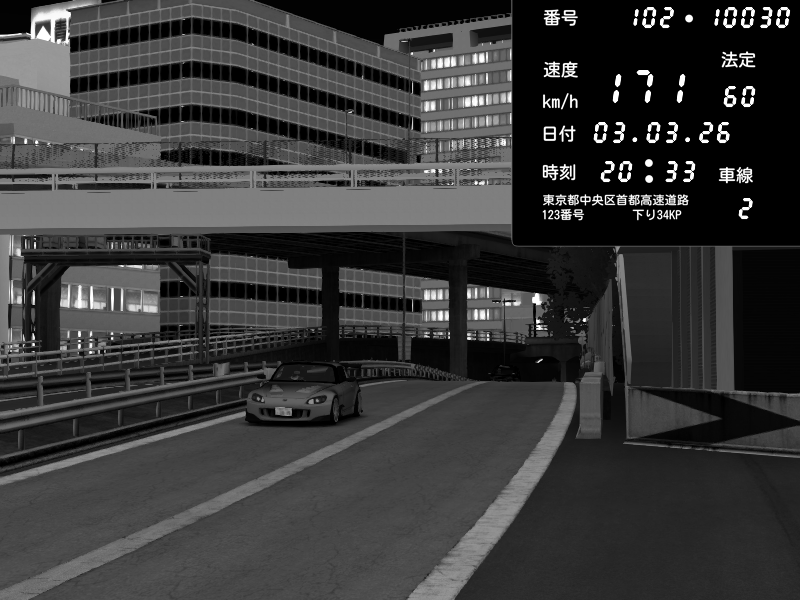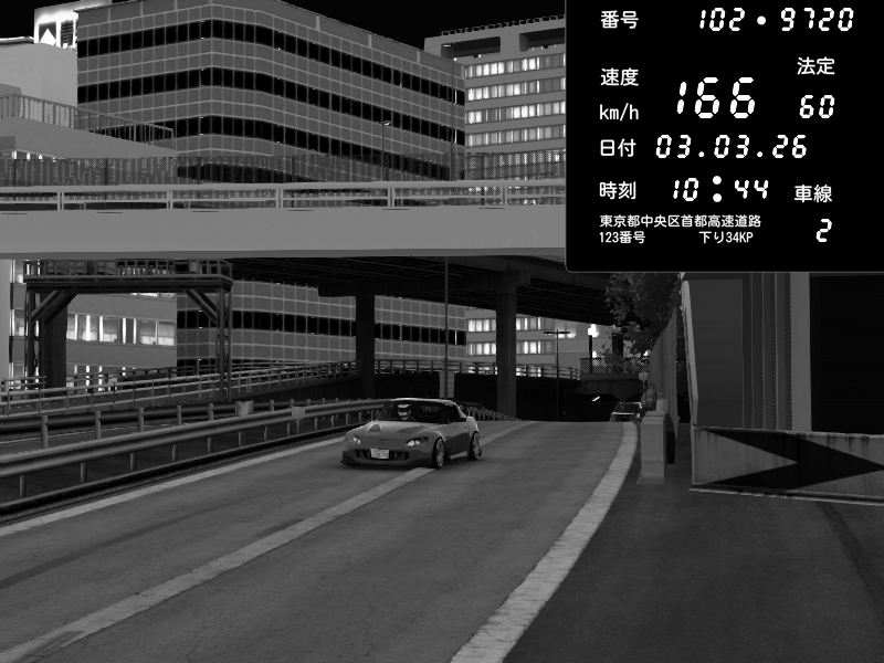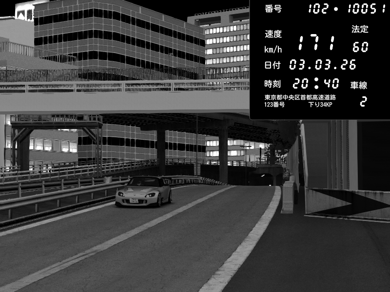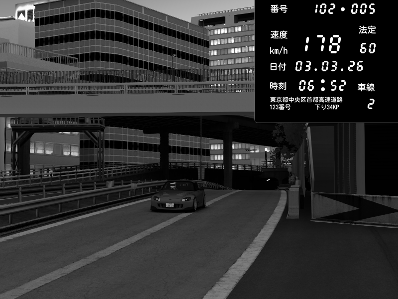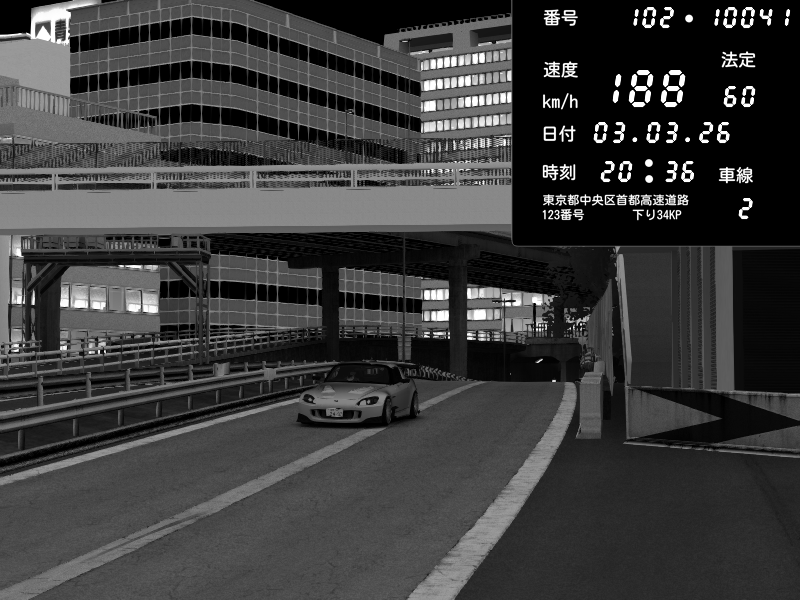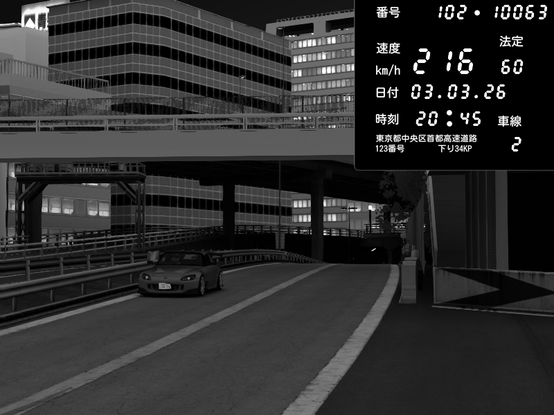 | 2026/03/03 20:29 | C1外回り 新富町 | 202 / 60 km/h | POCHI | Honda S2000 (AP2 - Legendary) | CAPTURE |