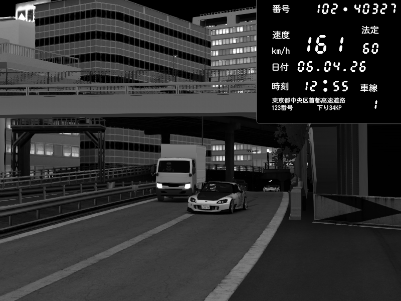 | 2026/04/06 13:55 | C1外回り 新富町 | 186 / 60 km/h | A1z | Honda S2000 (AP2 - Legendary) | CAPTURE |