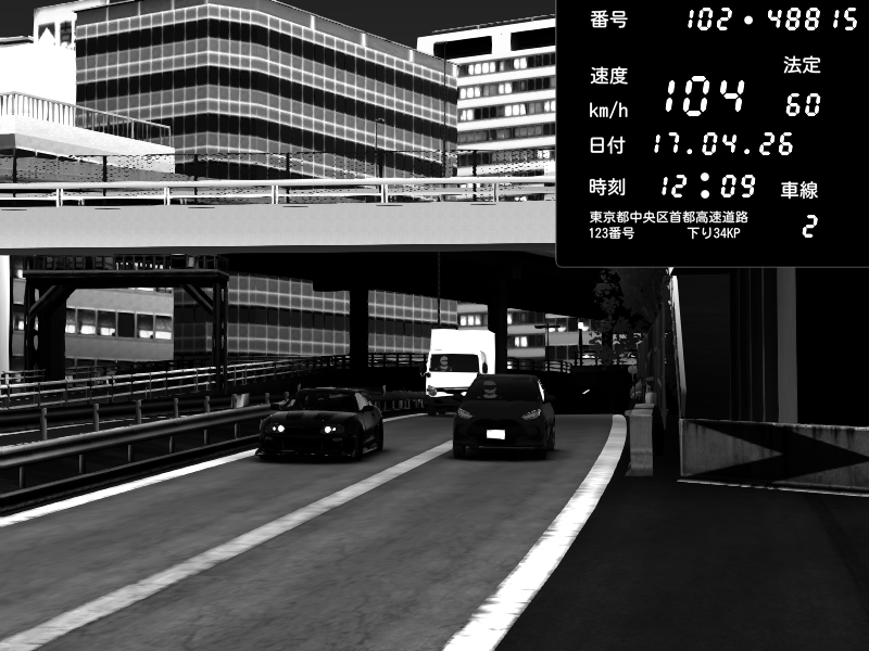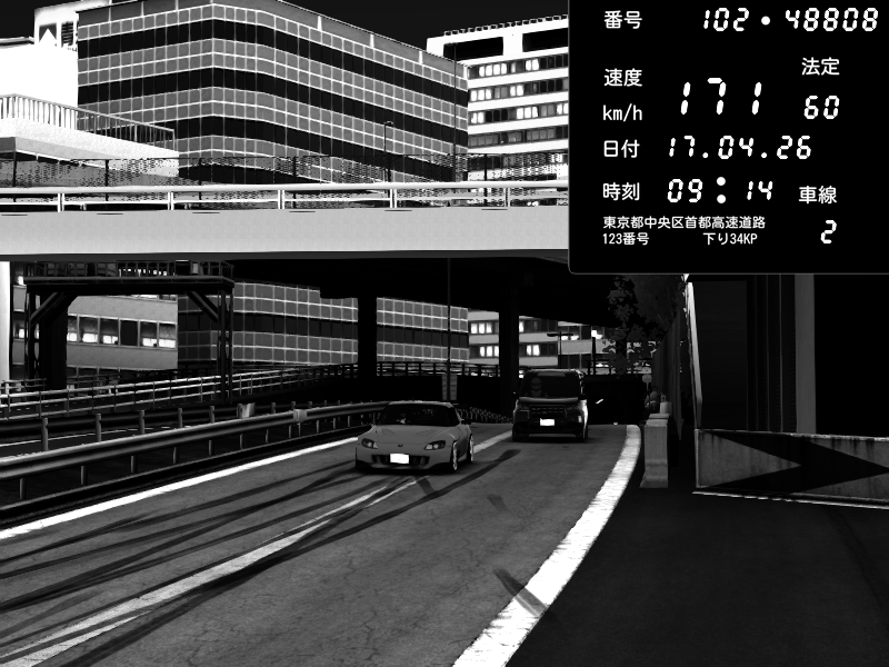 | 2026/04/17 22:02 | C1外回り 新富町 | 100 / 60 km/h | G29(LUT)&32TV60Hz3画面老人飲酒中 | Honda S2000 Turbo GT1 Amuse (AP1) | CAPTURE |