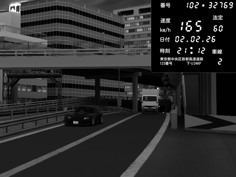 | 2026/02/02 20:59 | C1外回り 新富町 | 178 / 60 km/h | ( ・▽・) | Honda S2000 Turbo GT1 Amuse (AP1) | CAPTURE |