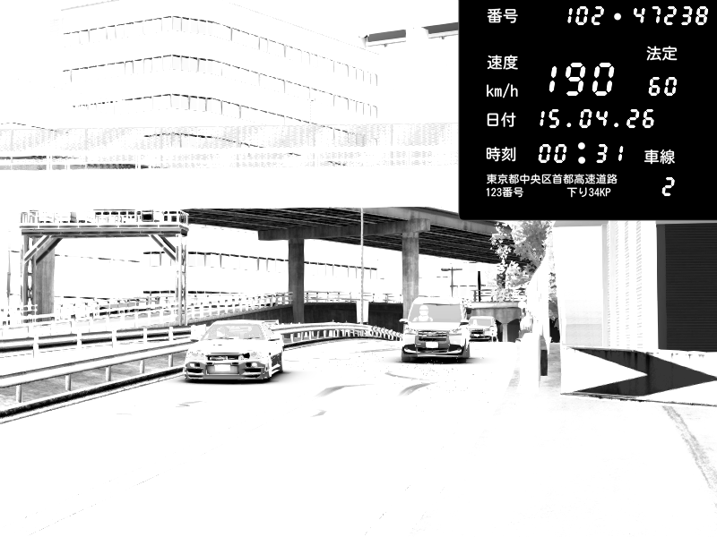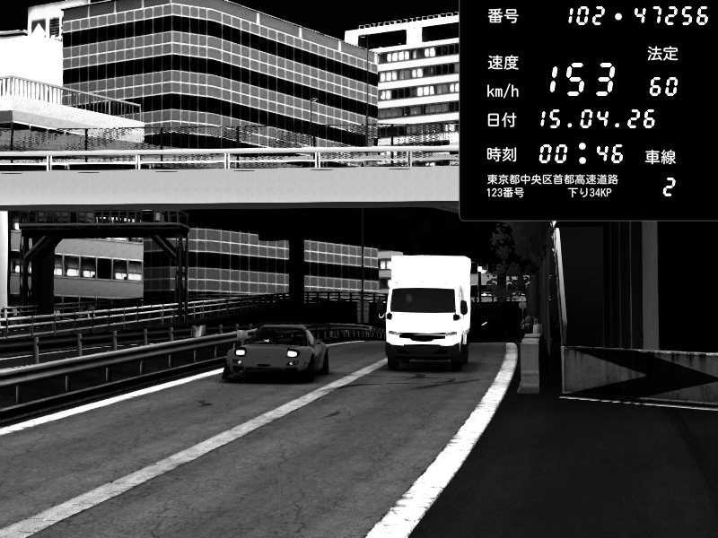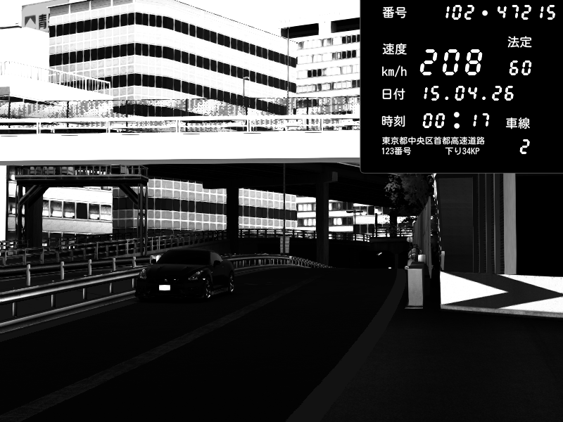 | 2026/04/15 00:17 | C1外回り 新富町 | 208 / 60 km/h | Kurokabe/S.R.C | Nissan GT-R NISMO 2017 | CAPTURE |