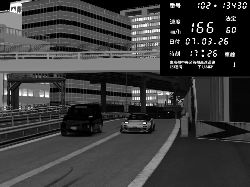 | 2026/03/07 22:57 | C1外回り 新富町 | 166 / 60 km/h | Escape77JP@pad | Mazda RX-7 FD3S RE Amemiya | CAPTURE |