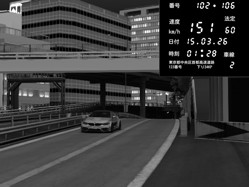 | 2026/03/15 01:45 | C1外回り 新富町 | 147 / 60 km/h | Rice Spoon | BMW M4 crash.Sp Varis Widebody | CAPTURE |