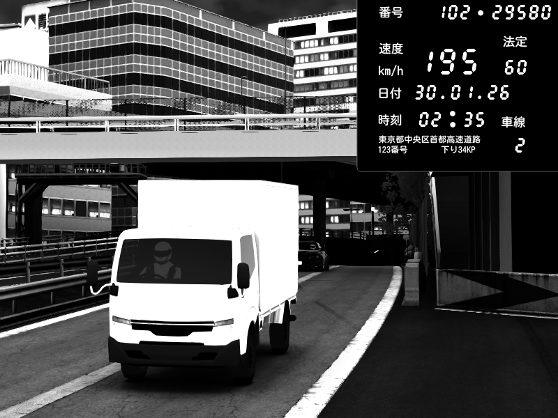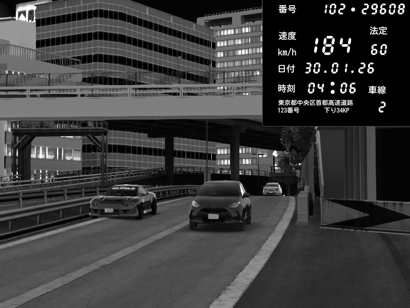 | 2026/01/30 04:00 | C1外回り 新富町 | 179 / 60 km/h | GUGUREKASU | Pit Road M - Mitsubishi GTO Twin Turbo | CAPTURE |
