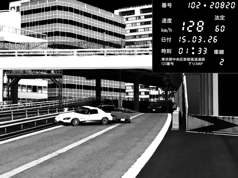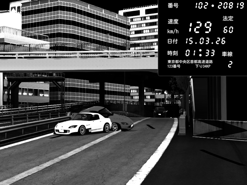 | 2026/03/15 01:33 | C1外回り 新富町 | 128 / 60 km/h | Shutoko Queen | Honda S2000 (AP2 - Legendary) | CAPTURE |