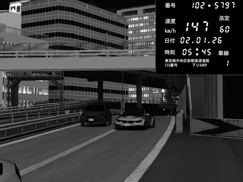 | 2026/01/02 05:45 | C1外回り 新富町 | 147 / 60 km/h | らいと<3 | BMW M4 crash.Sp Varis Widebody | CAPTURE |