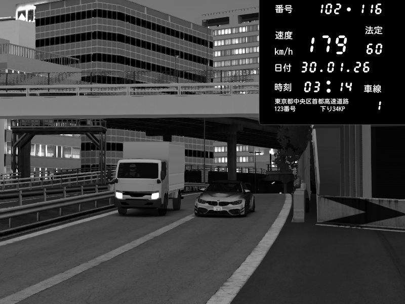 | 2026/01/30 04:11 | C1外回り 新富町 | 167 / 60 km/h | Ducky | BMW M4 crash.Sp Varis Widebody | CAPTURE |