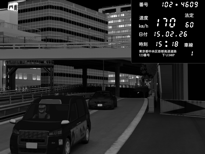 | 2026/02/15 16:25 | C1外回り 新富町 | 199 / 60 km/h | HellAkey | BMW M4 crash.Sp Varis Widebody | CAPTURE |