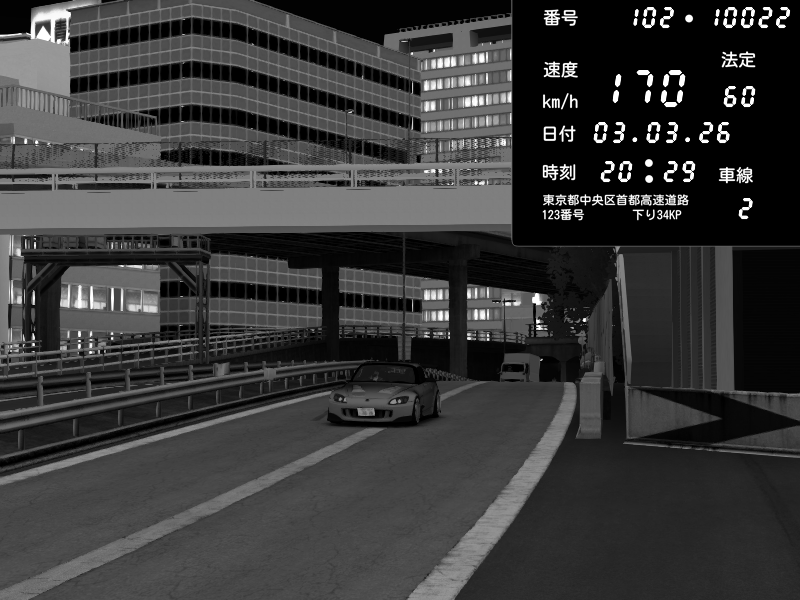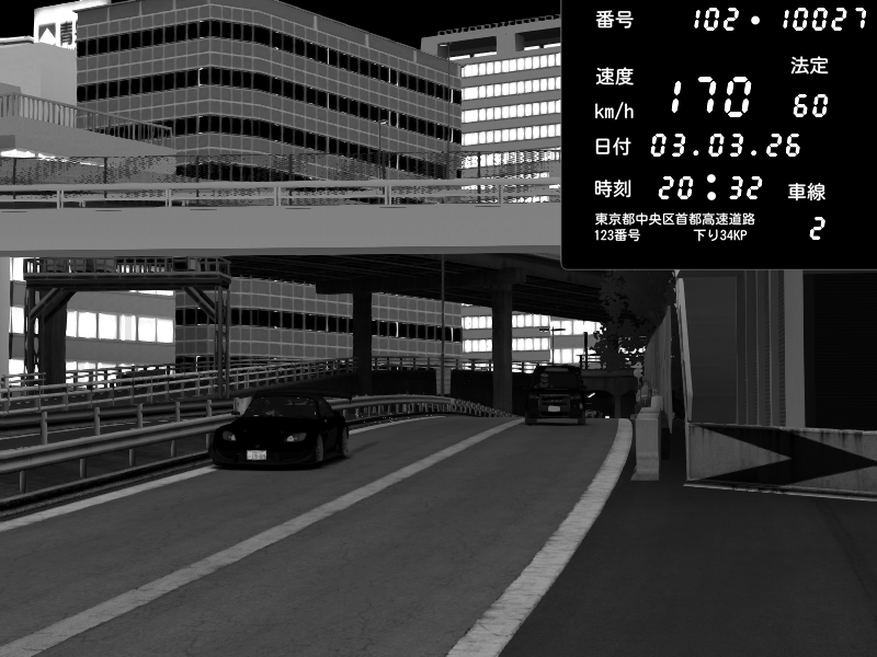 | 2026/03/03 20:32 | C1外回り 新富町 | 170 / 60 km/h | REO | Honda S2000 Turbo GT1 Amuse (AP1) | CAPTURE |