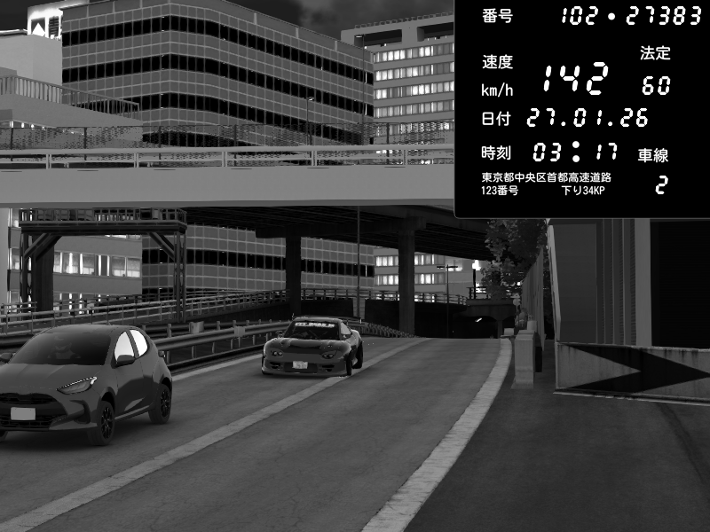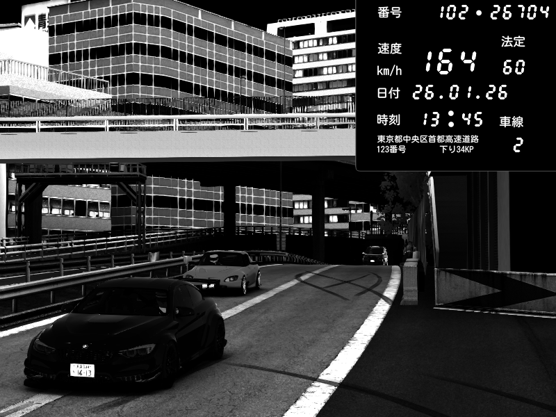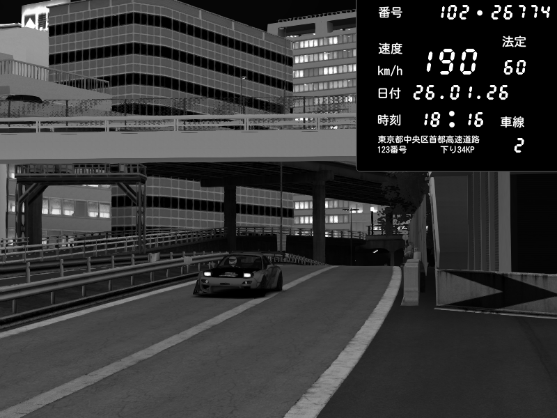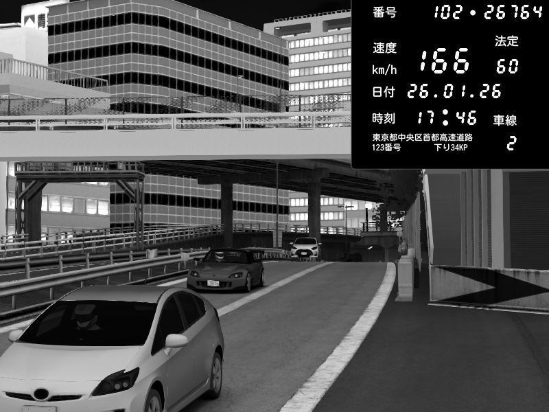 | 2026/01/26 17:30 | C1外回り 新富町 | 182 / 60 km/h | HKFYG KS | Honda S2000 Turbo GT1 Amuse (AP1) | CAPTURE |