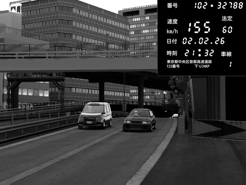 | 2026/02/02 21:32 | C1外回り 新富町 | 155 / 60 km/h | ixoye1205 | Mitsubishi Lancer Evolution V Wangan Spec | CAPTURE |