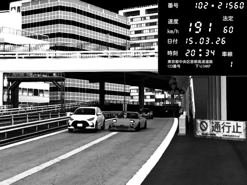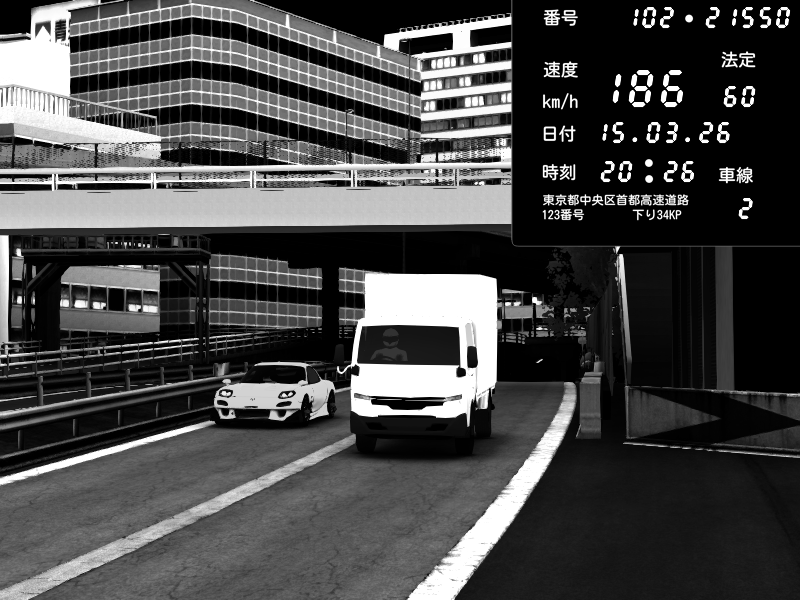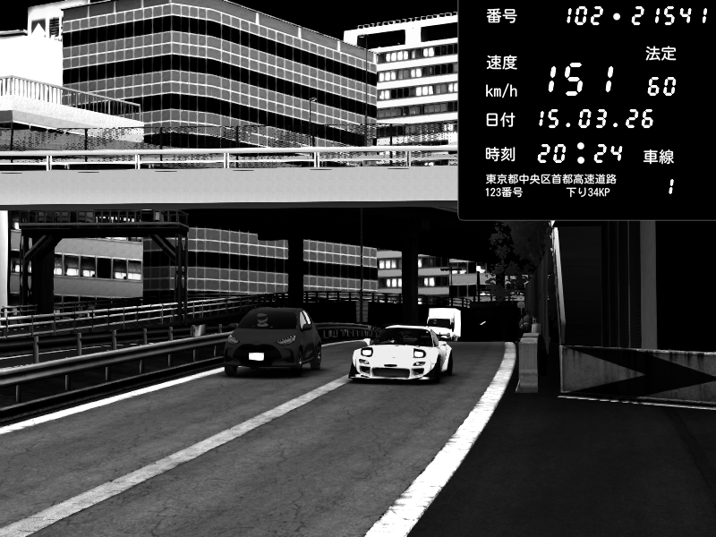 | 2026/03/15 20:30 | C1外回り 新富町 | 160 / 60 km/h | PAICHEN | Mazda RX-7 FD3S RE Amemiya | CAPTURE |