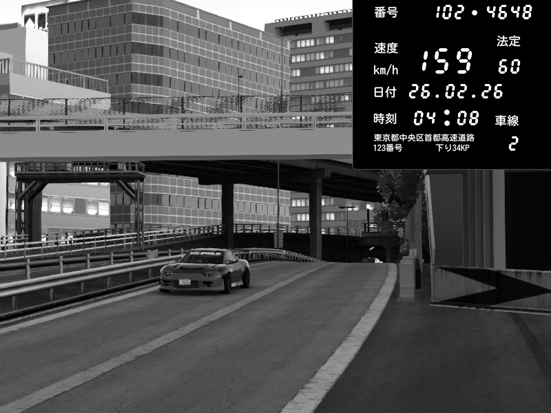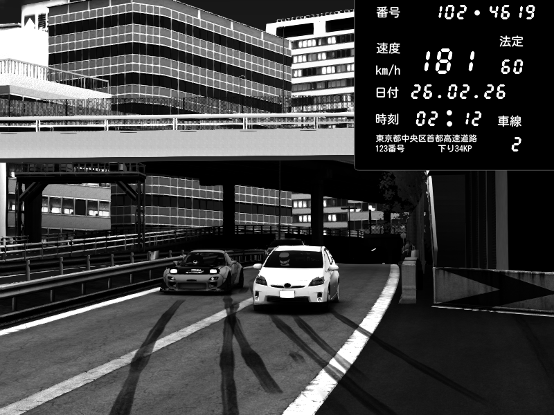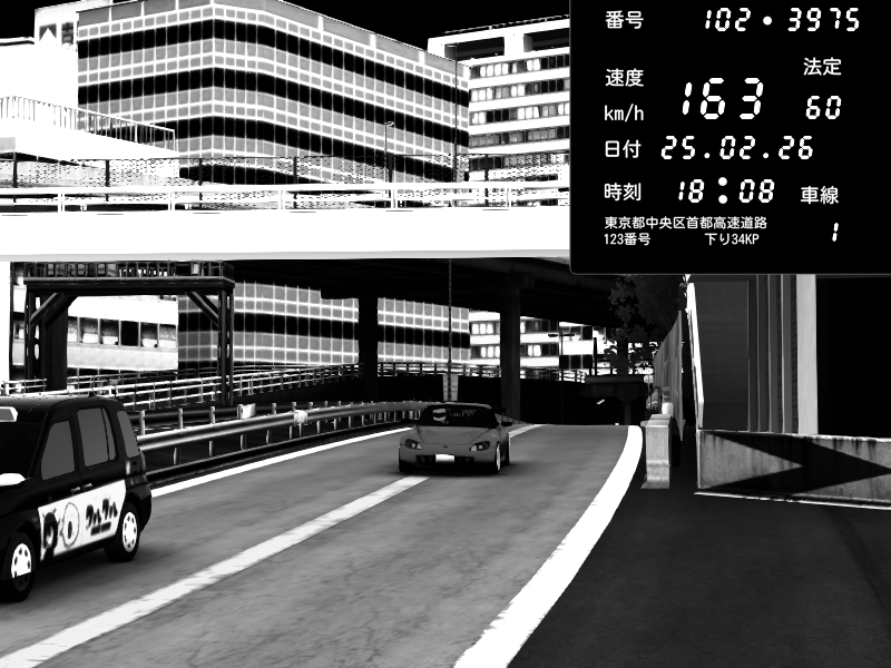 | 2026/02/26 03:06 | C1外回り 新富町 | 183 / 60 km/h | Retuski | Nissan Skyline GTR R33 (S3 - Wangan) | CAPTURE |