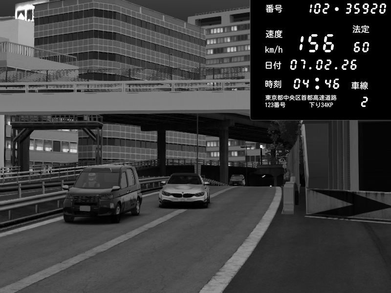 | 2026/02/07 04:46 | C1外回り 新富町 | 156 / 60 km/h | みにぼーい | BMW M4 crash.Sp Varis Widebody | CAPTURE |