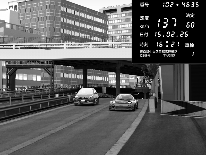 | 2026/02/15 15:06 | C1外回り 新富町 | 141 / 60 km/h | 還暦狂走部 | Mazda RX-7 FD3S RE Amemiya | CAPTURE |