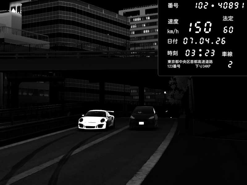 | 2026/04/07 06:45 | C1外回り 新富町 | 120 / 60 km/h | Lazzhunter | Porsche 911 GT3 RS | CAPTURE |