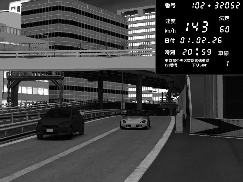 | 2026/02/01 20:59 | C1外回り 新富町 | 209 / 60 km/h | Escape77JP@pad | Honda S2000 (AP2 - Legendary) | CAPTURE |