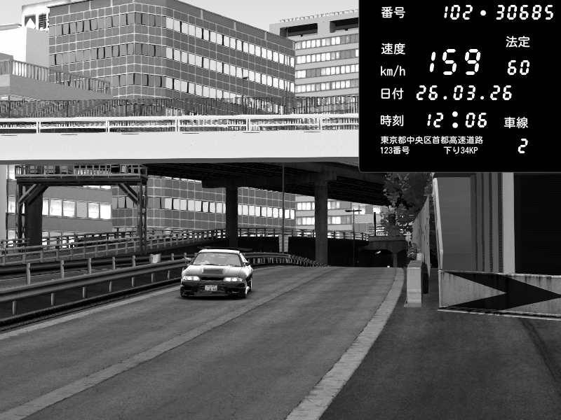| 2026/03/26 12:06 | C1外回り 新富町 | 159 / 60 km/h | omafu | Nissan Skyline GTR R33 (S3 - Wangan) | CAPTURE |