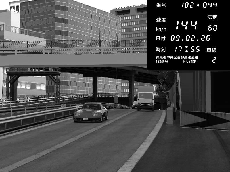 | 2026/02/09 17:55 | C1外回り 新富町 | 144 / 60 km/h | G29(LUT)&32TV60Hz3画面老人晩酌中 | Honda S2000 Turbo GT1 Amuse (AP1) | CAPTURE |