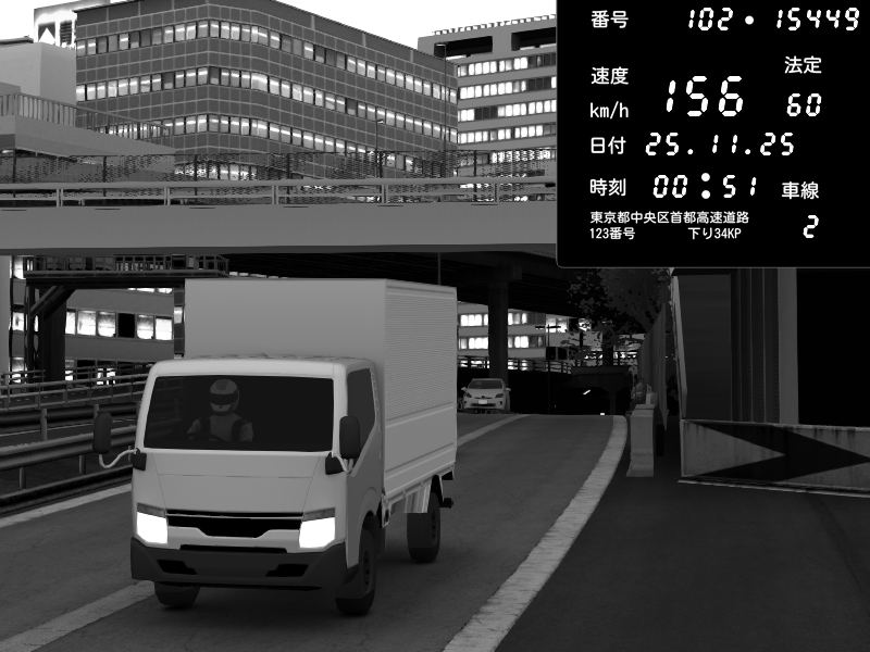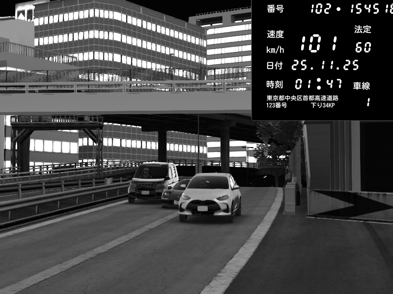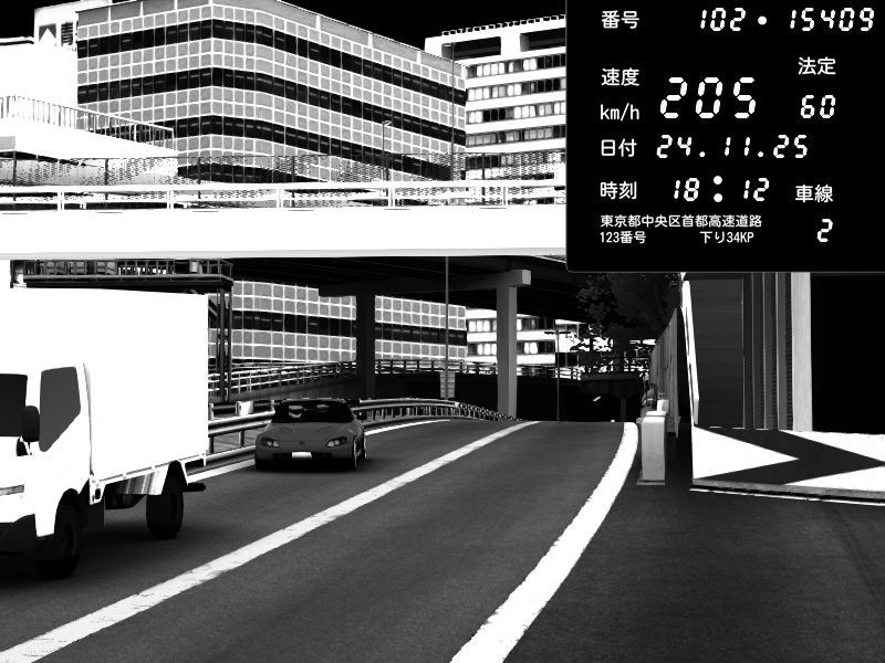| 2025/11/25 01:34 | C1外回り 新富町 | 179 / 60 km/h | Ls04 | Mitsubishi Lancer Evolution V Wangan Spec | CAPTURE |
