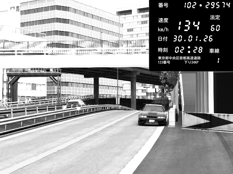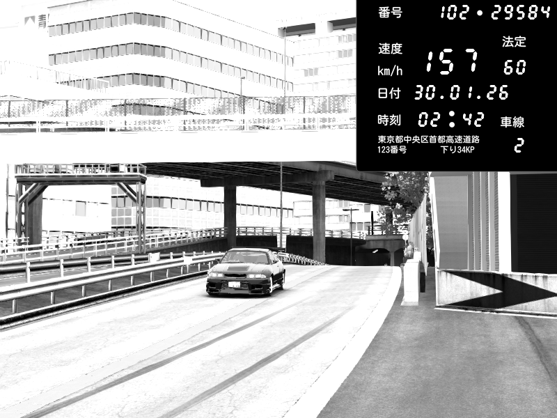 | 2026/01/30 02:36 | C1外回り 新富町 | 142 / 60 km/h | SHOW5 | Nissan Skyline GTR R33 (S3 - Wangan) | CAPTURE |