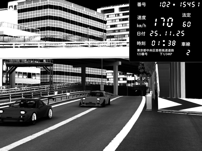 | 2025/11/25 00:48 | C1外回り 新富町 | 182 / 60 km/h | Player | Mazda RX-7 FD3S FEED Afflux GT3 | CAPTURE |