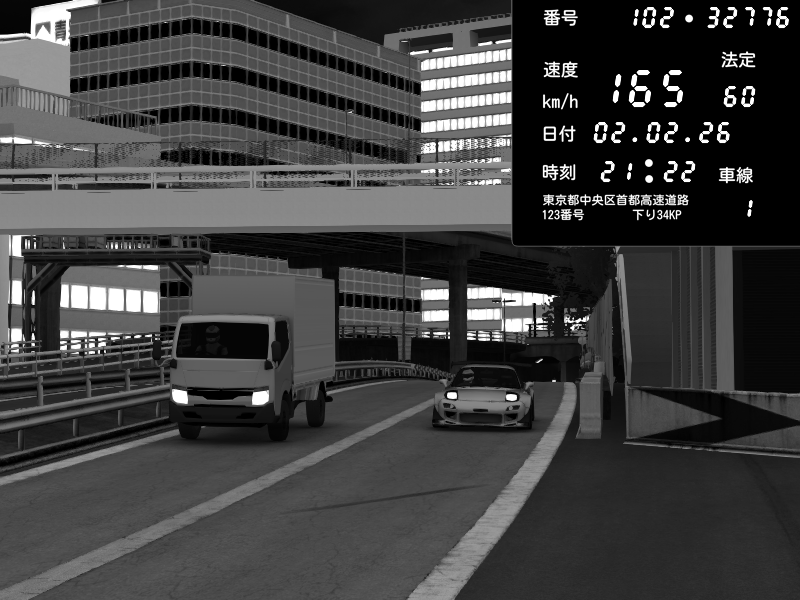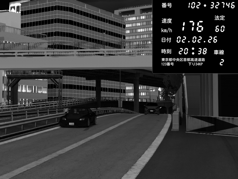 | 2026/02/02 20:38 | C1外回り 新富町 | 176 / 60 km/h | G29(LUT)&32TV60Hz3画面老人飲酒中 | Honda S2000 Turbo GT1 Amuse (AP1) | CAPTURE |