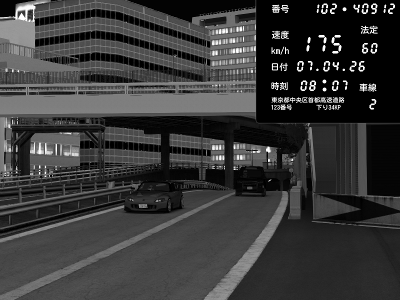 | 2026/04/07 03:27 | C1外回り 新富町 | 197 / 60 km/h | Sh0a | Honda S2000 (AP2 - Legendary) | CAPTURE |
