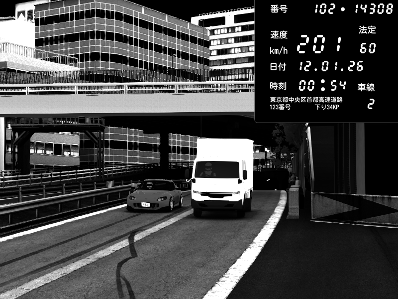 | 2026/01/12 00:54 | C1外回り 新富町 | 201 / 60 km/h | Escape77JP@pad | Honda S2000 (AP2 - Legendary) | CAPTURE |