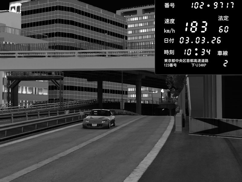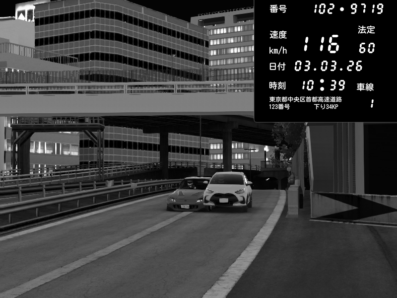 | 2026/03/03 20:34 | C1外回り 新富町 | 182 / 60 km/h | U-0 | Honda S2000 Turbo GT1 Amuse (AP1) | CAPTURE |