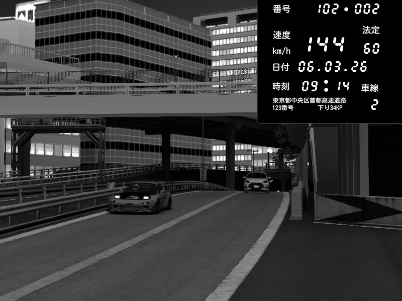 | 2026/03/07 02:22 | C1外回り 新富町 | 150 / 60 km/h | PPED | Pit Road M - Mitsubishi GTO Twin Turbo | CAPTURE |