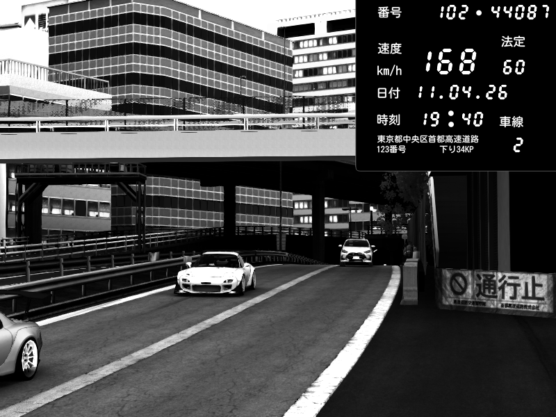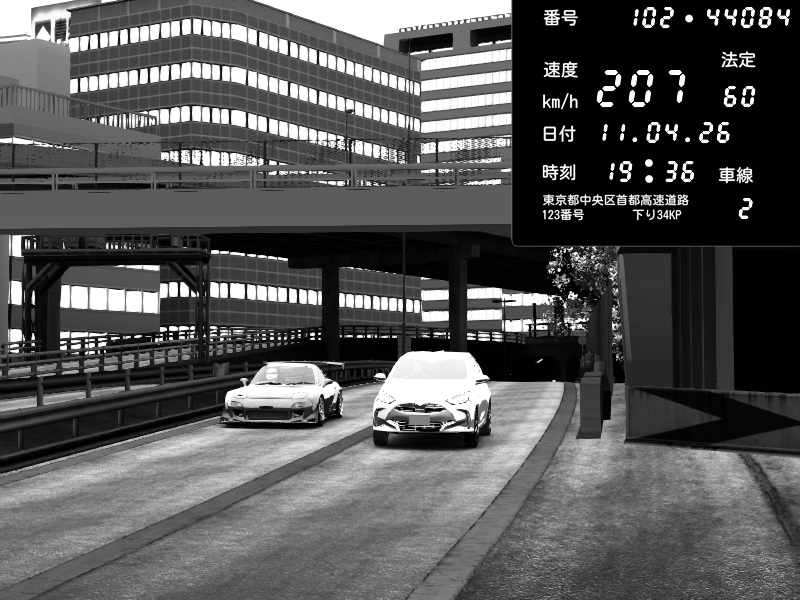 | 2026/04/11 19:38 | C1外回り 新富町 | 183 / 60 km/h | Pixy | Pit Road M - Mitsubishi GTO Twin Turbo | CAPTURE |