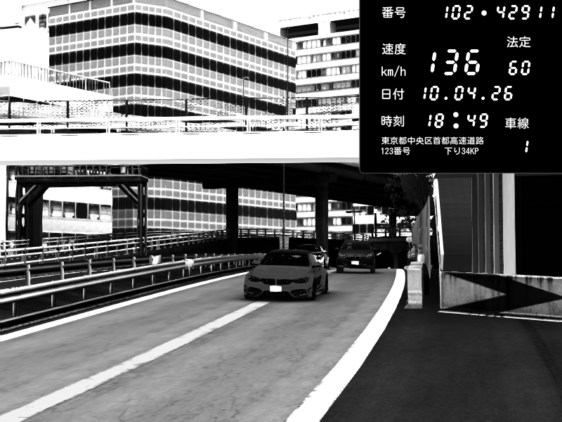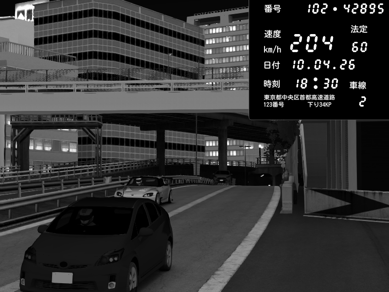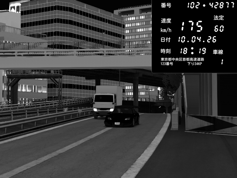 | 2026/04/10 18:30 | C1外回り 新富町 | 180 / 60 km/h | Pixy | Pit Road M - Mitsubishi GTO Twin Turbo | CAPTURE |
