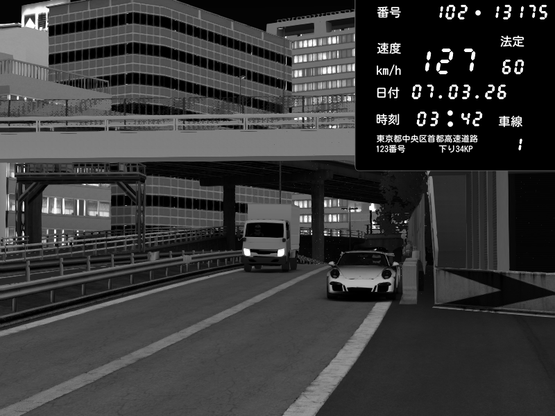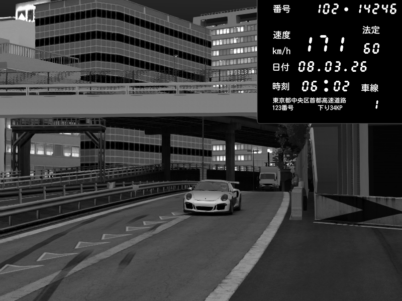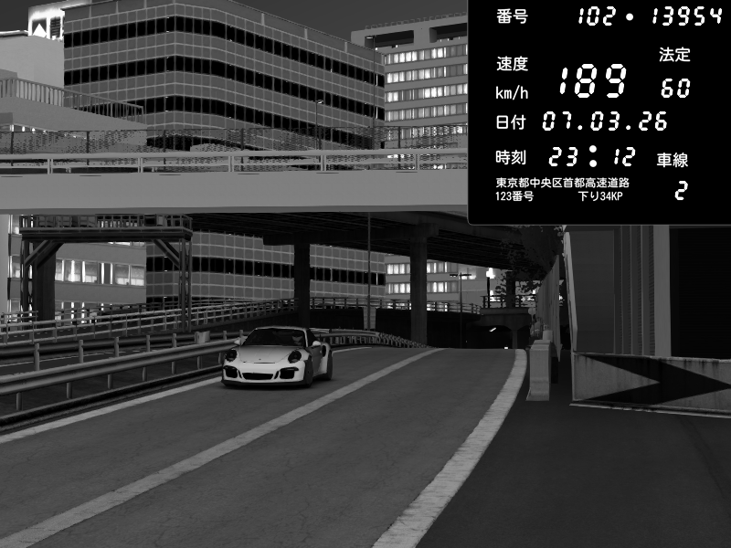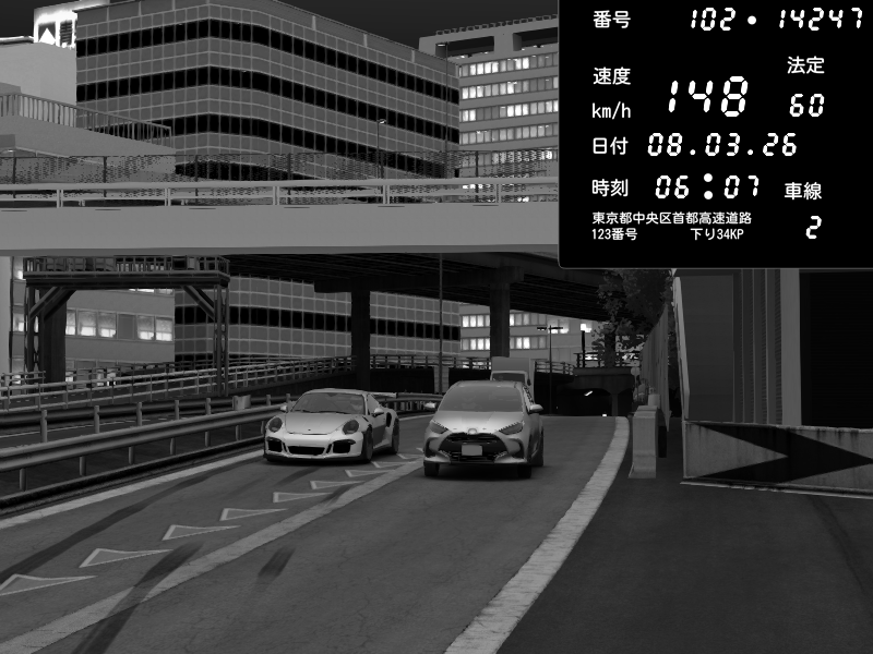 | 2026/03/07 23:12 | C1外回り 新富町 | 189 / 60 km/h | CY | Porsche 911 GT3 RS | CAPTURE |