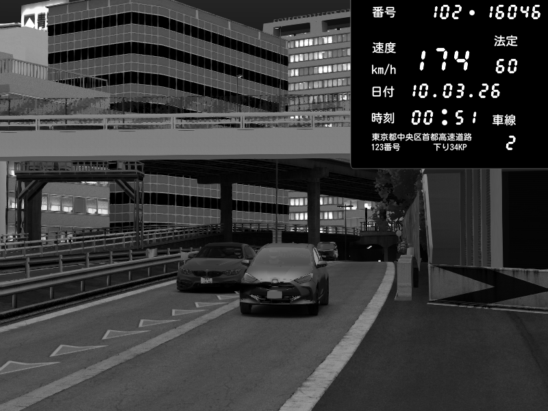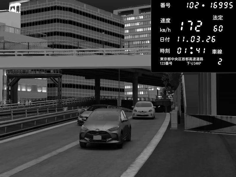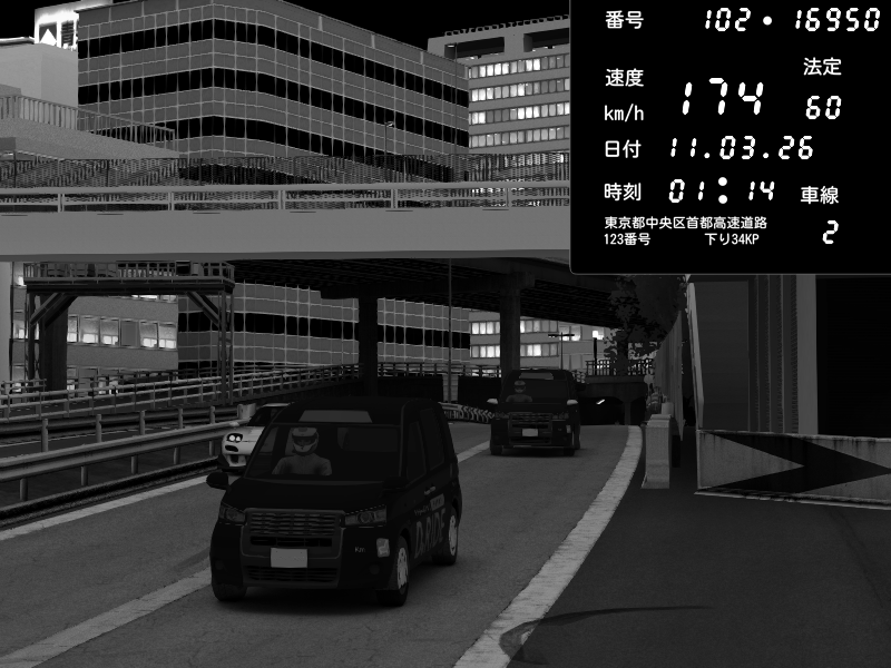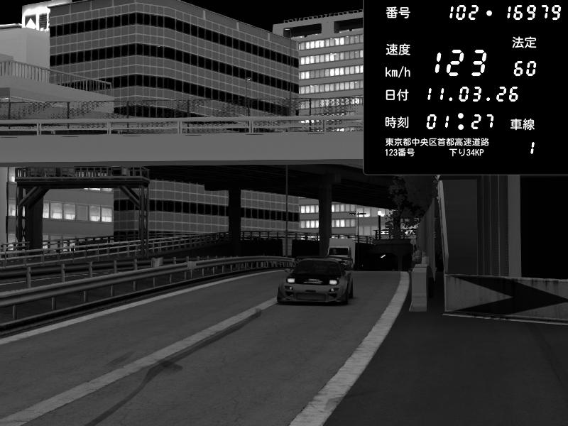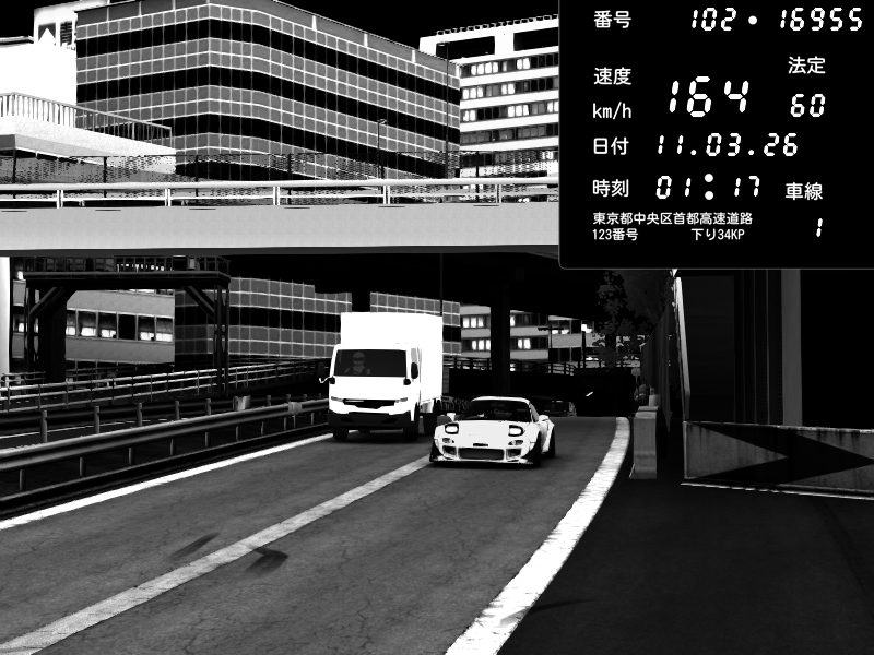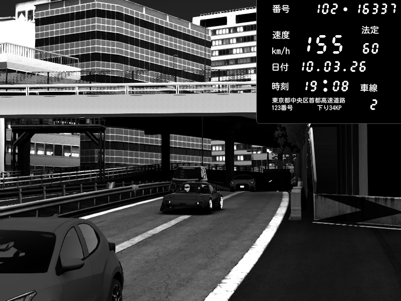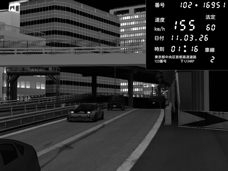 | 2026/03/11 01:44 | C1外回り 新富町 | 166 / 60 km/h | Escape77JP@pad | Pit Road M - Mitsubishi GTO Twin Turbo | CAPTURE |